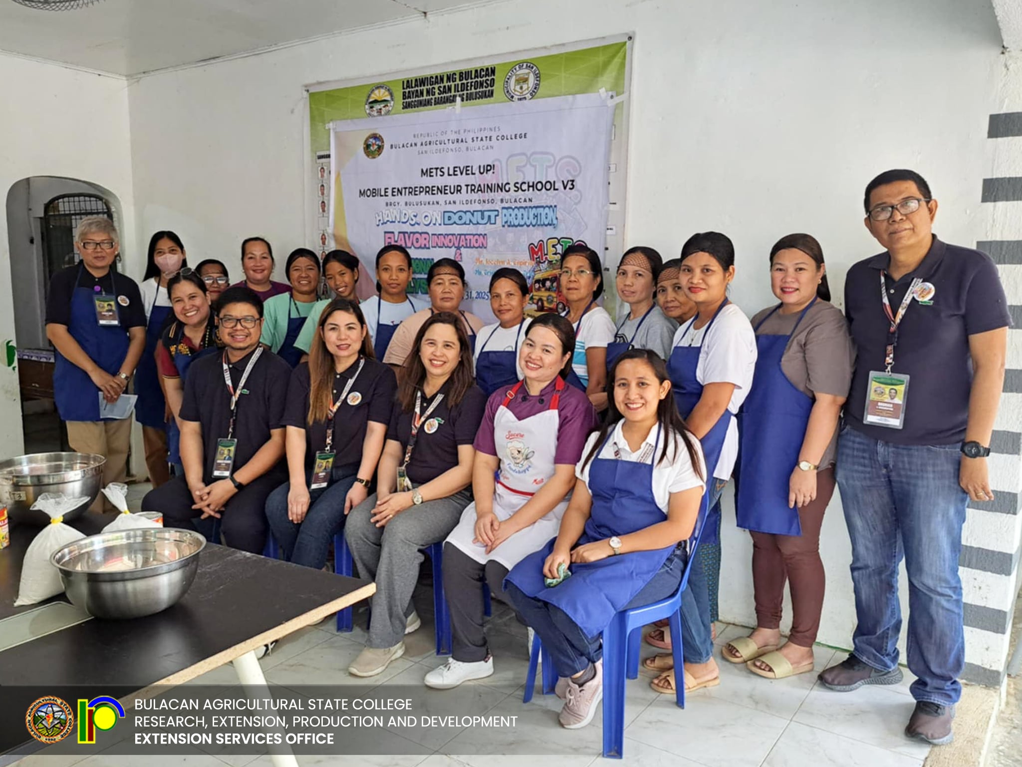 San Ildefonso, Bulacan – Rural Improvement Club members, women farmers, housewives, mother leaders and health workers honed their skills in donut production, flavor innovation, and nutritional analysis during a hands-on training session conducted by the project management team of “METS Level UP! Mobile Entrepreneurs Training School V3” today, January 31, 2025 at Bulusukan.